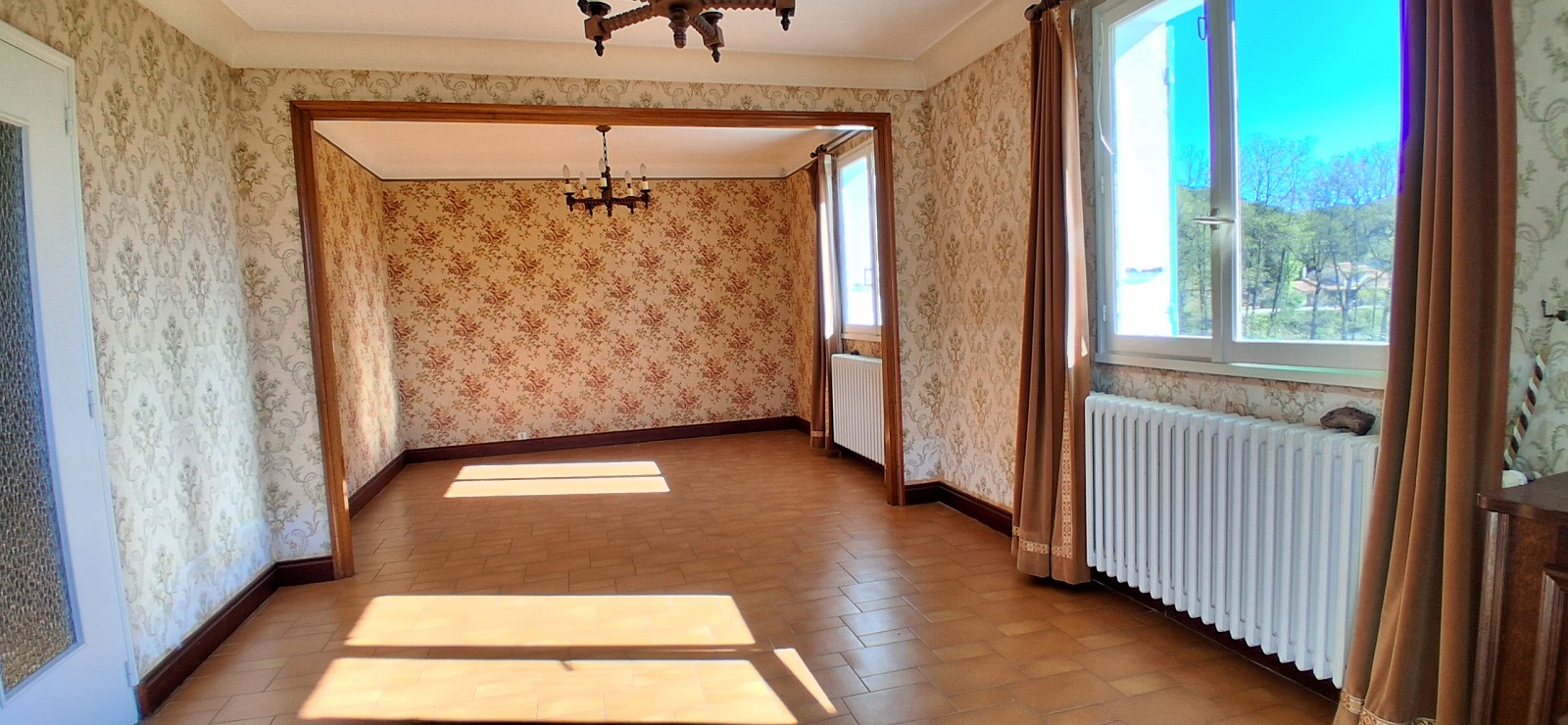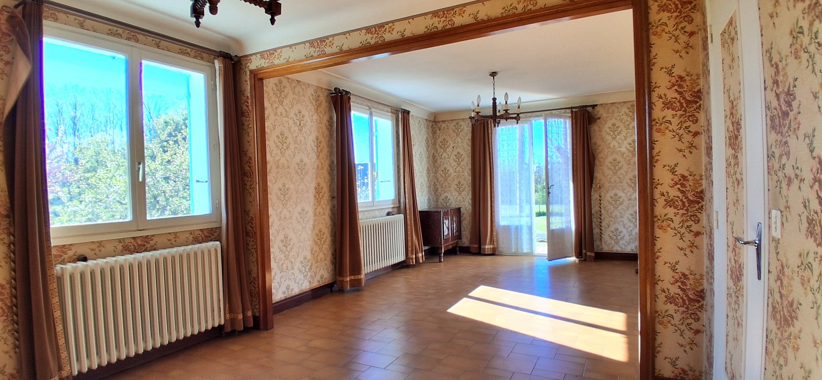 - Un salon salle à manger (25m²) porte fenêtre vers terrasse, fenêtres avec vue dégagée