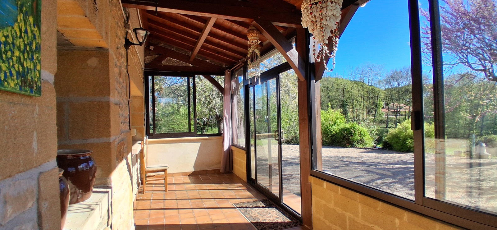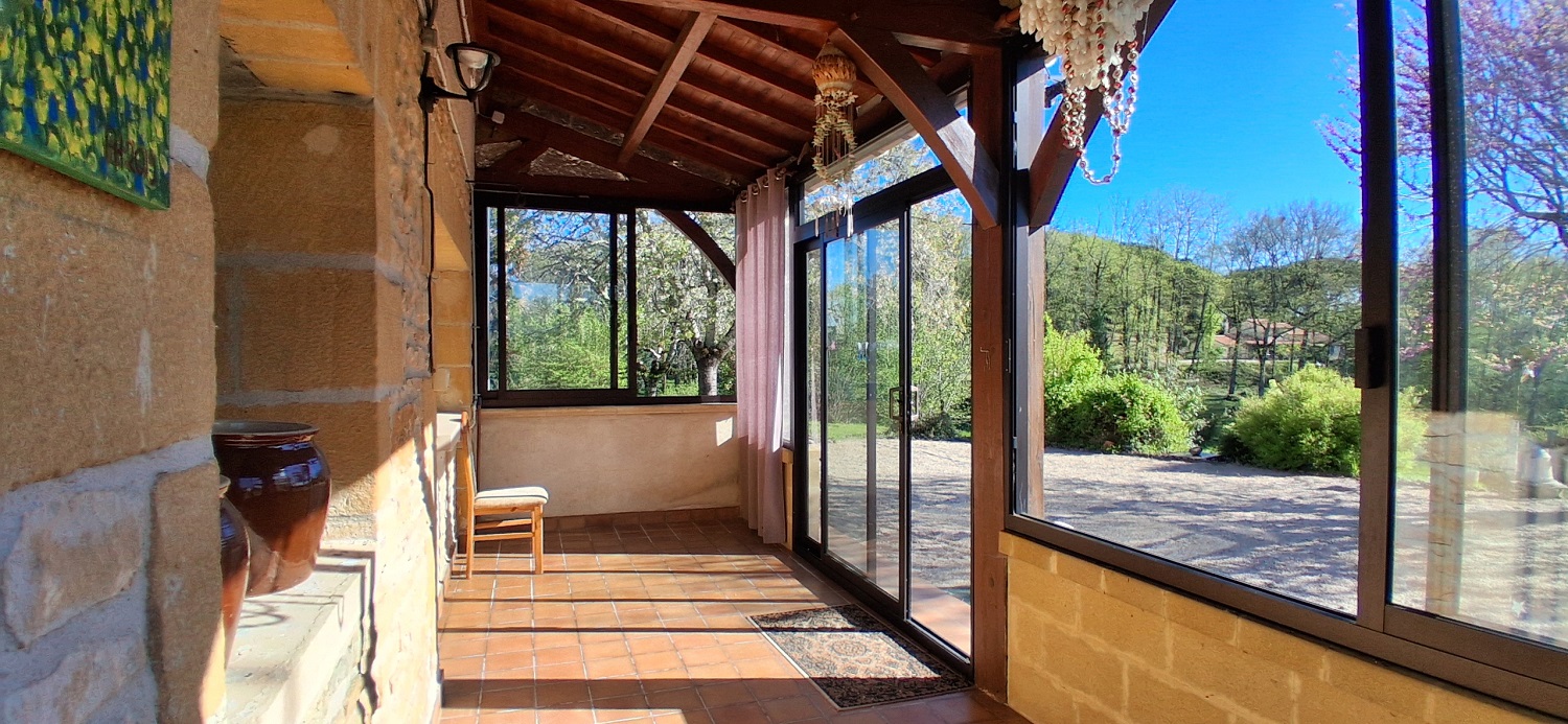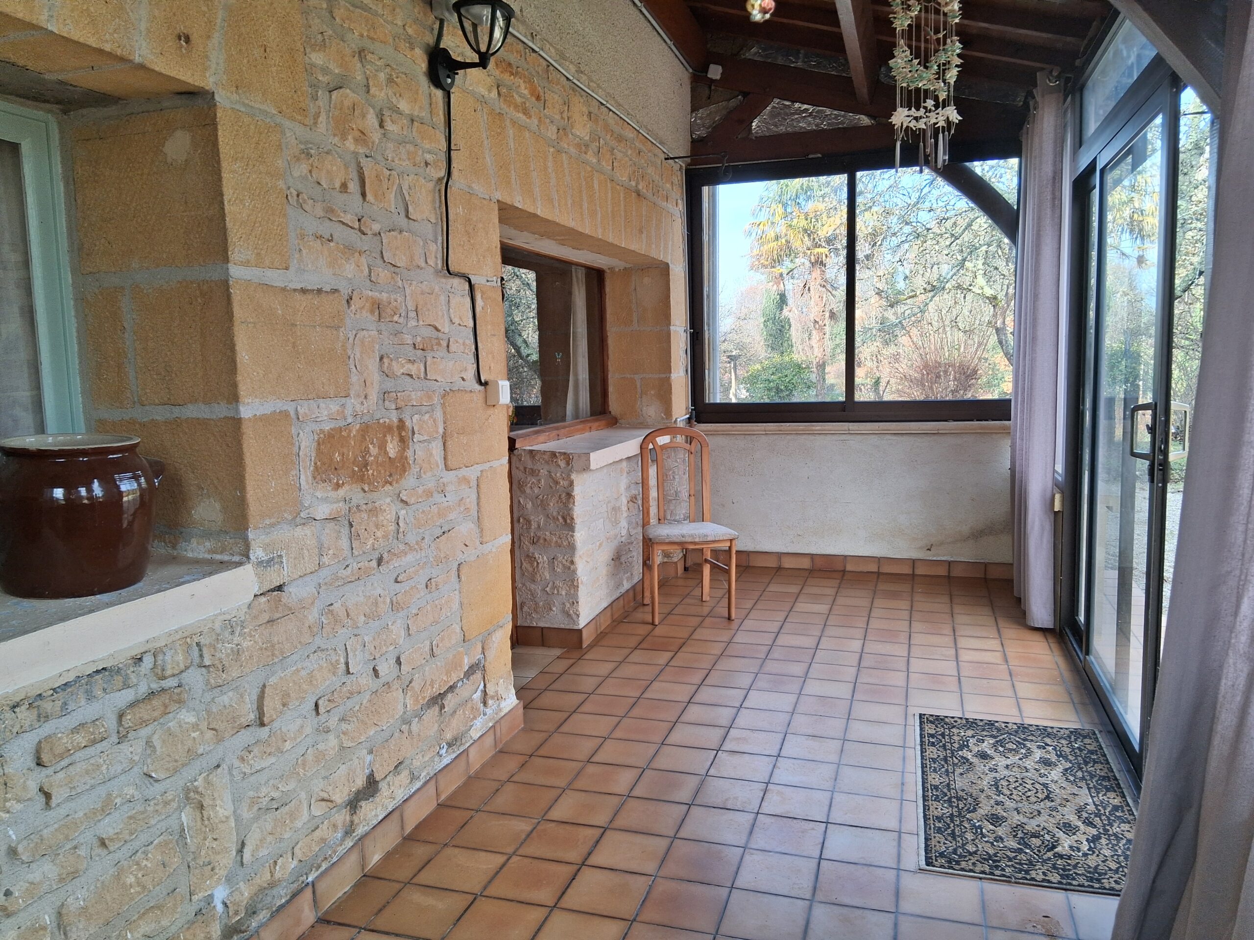 - Véranda (13m²), carrelage, constitue une pièce en plus